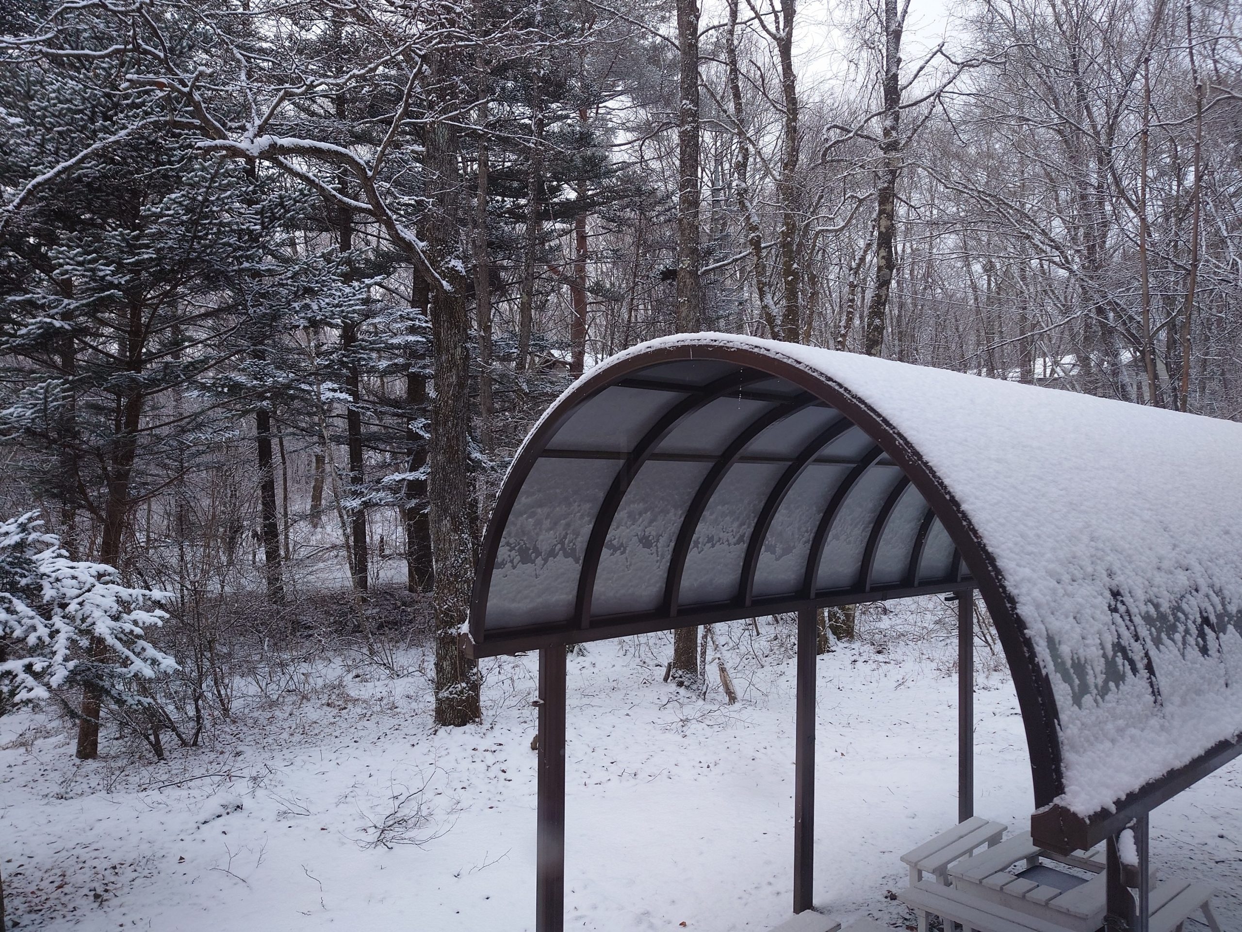 軽井沢中心部では雪がほとんど無いことも珍しくないですが、標高が高い北軽井沢まで行けば暖冬でも薄っすらと雪が残っている光景を高確率で目にすることができます。